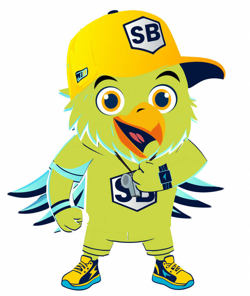 Slump Buster — the energetic coach, motivating children to move and shine.